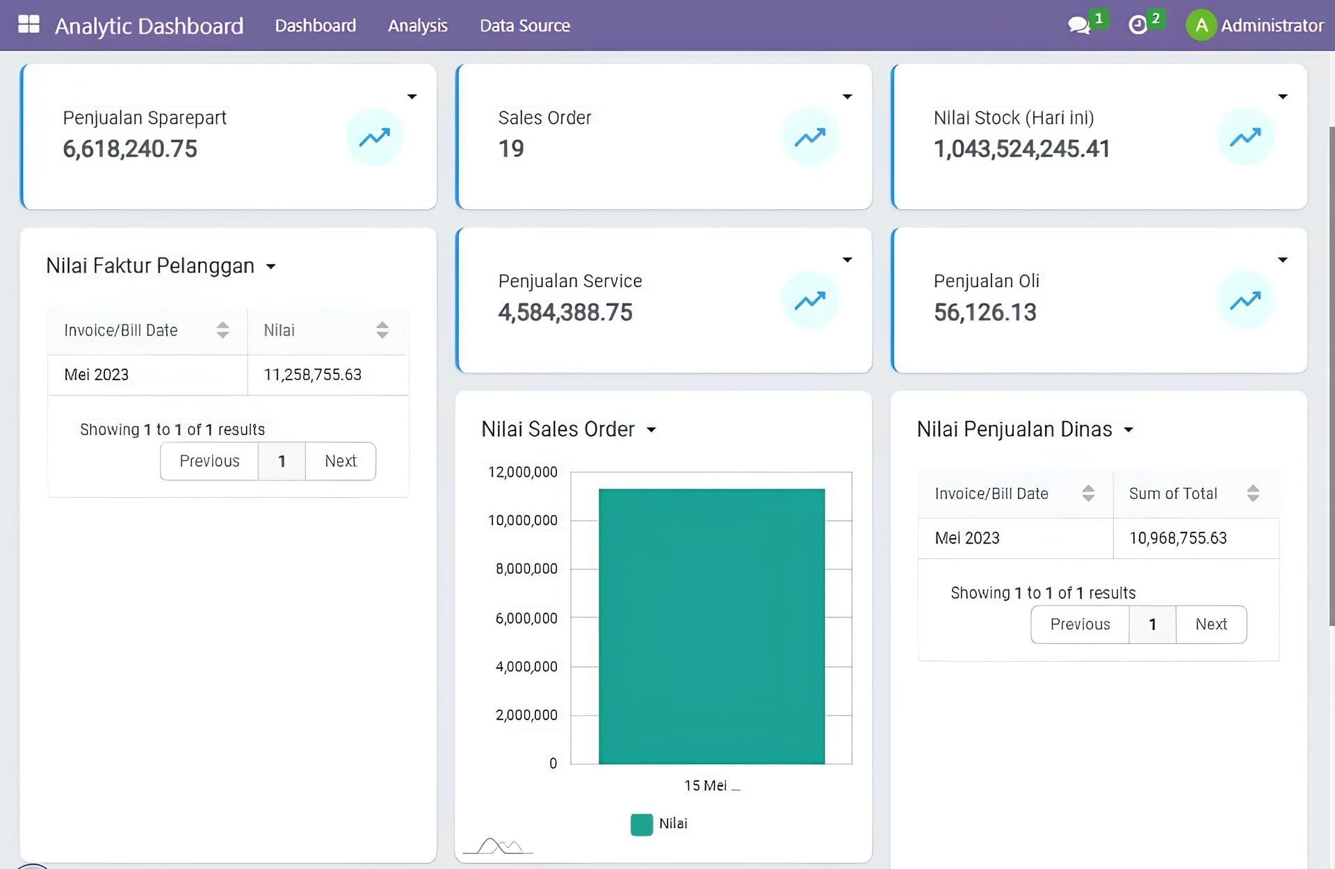Selain itu, Odoo Sistem Manajemen Bengkel juga dilengkapi dengan dashboard analitik untuk memantau performa bengkel, tingkat utilisasi mekanik, penjualan sparepart, hingga profitabilitas layanan. Dengan data real-time, pemilik bengkel dapat mengambil keputusan yang lebih tepat untuk meningkatkan layanan dan mengembangkan bisnis.